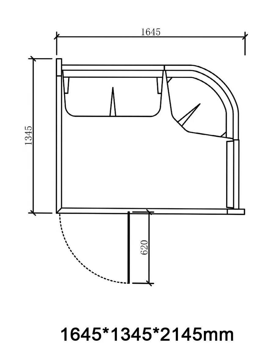 מידות: 1.65 אורך, עומק 1.35 וגובה 2.15 מטר.